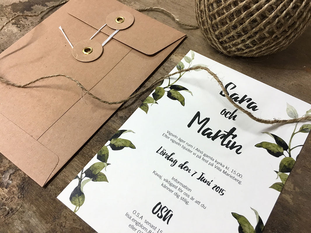 Miljö, natur, eko. Göteborg eko är vår senaste kollektion med trycksaker till bröllop. Här får ni en hint om hur den kommer se ut. Den kommer tryckas på ett naturvitt papper. Allt är miljövänligt till 100 %.